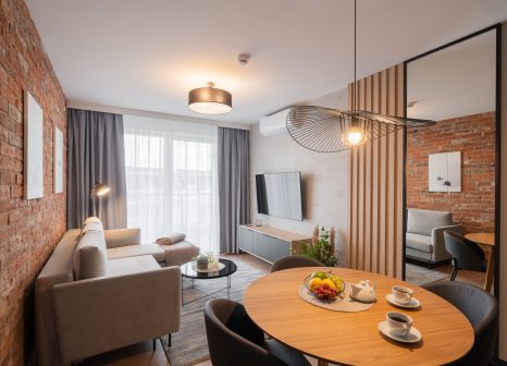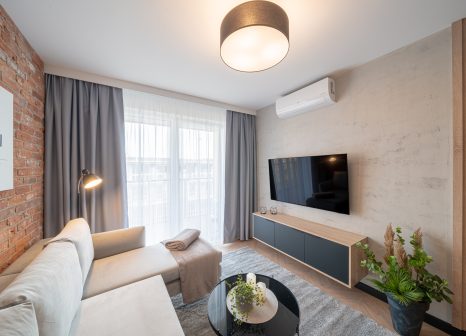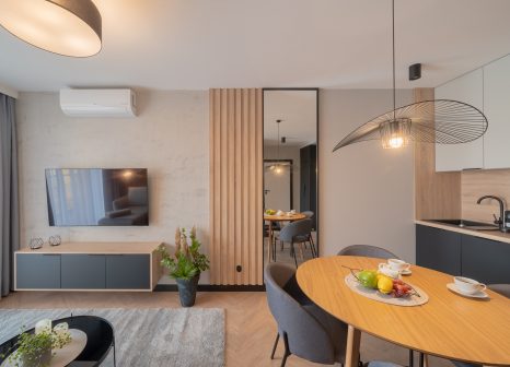 Wählen Sie Apartment B-310 für Ihren Aufenthalt – es ist der perfekte Ort für Menschen, die moderne Ästhetik, hohen Standard und Entspannung pur suchen.